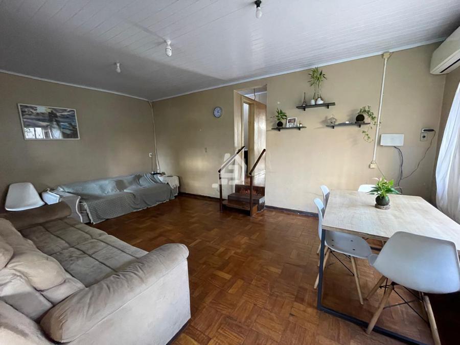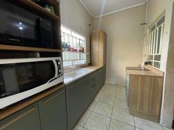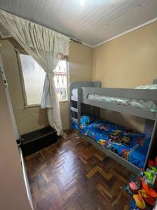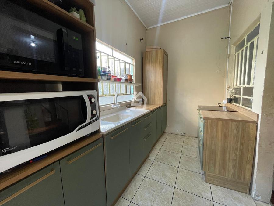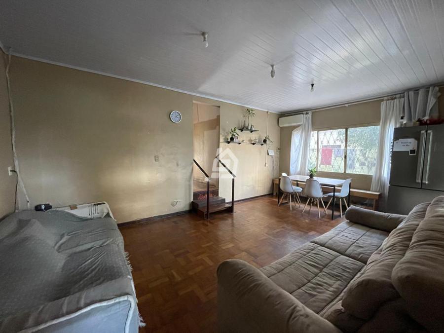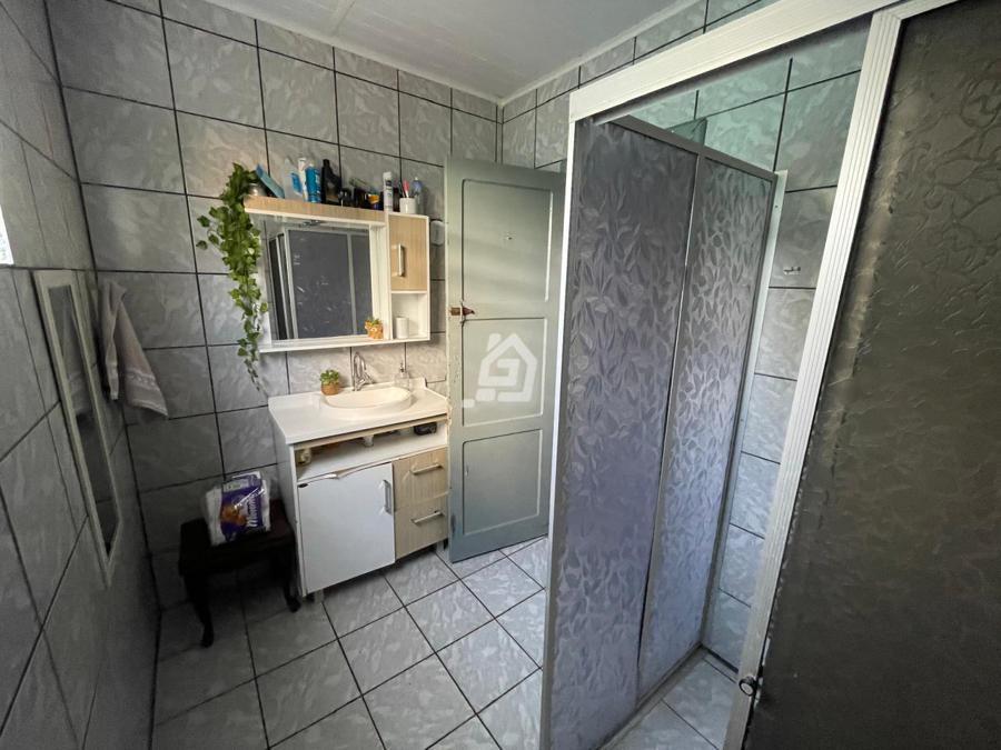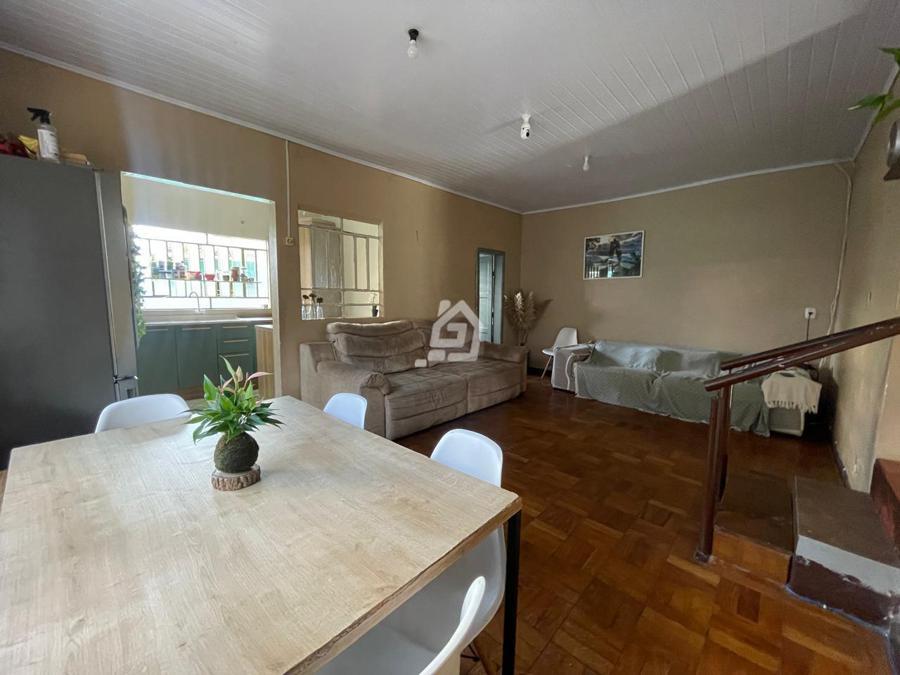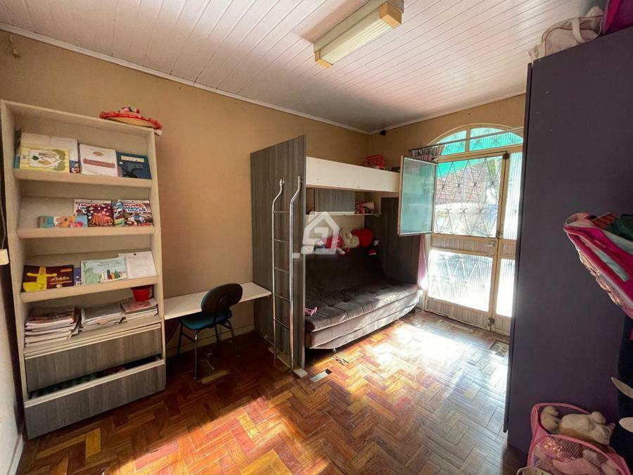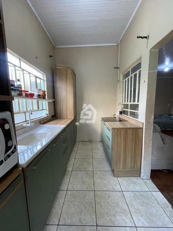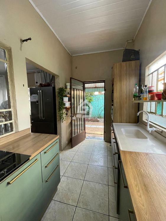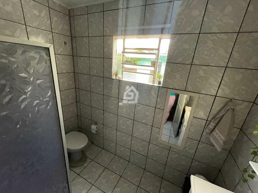 Casa ampla, com três dormitórios, banheiro social , duas salas, cozinha, área de serviço e garagem.