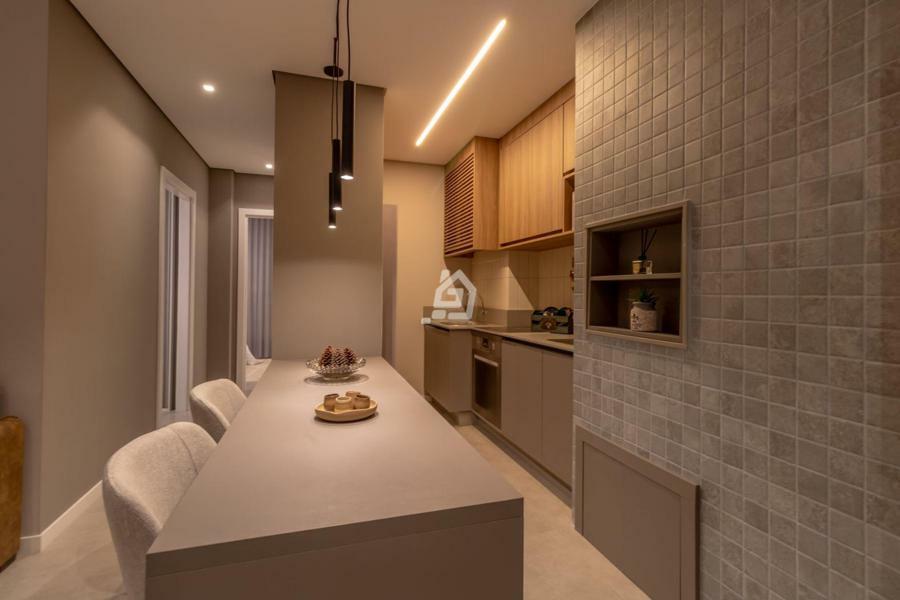 Diferenciais: churrasqueira, fechadura digital, Janelas amplas para melhor ventilação e aproveitamento da iluminação natural, piso porcelanato, isolamento acústico, persianas motorizadas nos dormitórios. Uma vaga de garagem. *Consulte unidades entregue com moveis, tampos, louças e luminárias, cubas e torneiras.