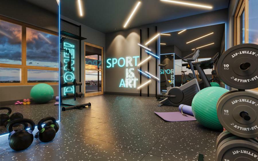• Área Fitness: academia no último andar, com vista para o nascer do sol e sonorização via Bluetooth